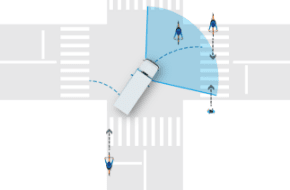 カメラが交差点通過時や後退時の危険を検知し、ドライバーに通知することで安全運転をサポートします。